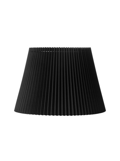 Sort plisse lampeskærm, kaldet Emma Villa, i plisseret stof og en mere lodret side end de klassiske modeller. Du kan se monteringsmåde under specifikationer, i teksten herunder eller på billederne på den enkelte størrelse. Højde 23 cm Top Ø22 cm Bund Ø33 (Læs mere)